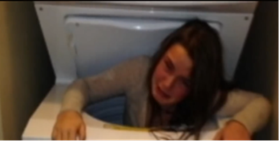 hide and seek. One girl hides in the washing machine. Her sister can't find