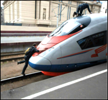trains in Russia. Trains are good. They go fast. Many people take a train.