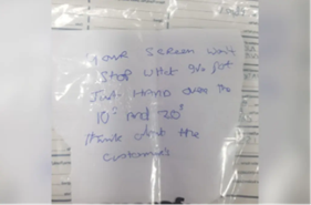 Bank Robber's Sloppy Note |