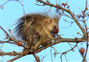 accident when a porcupine fell on her head. This happened while she was